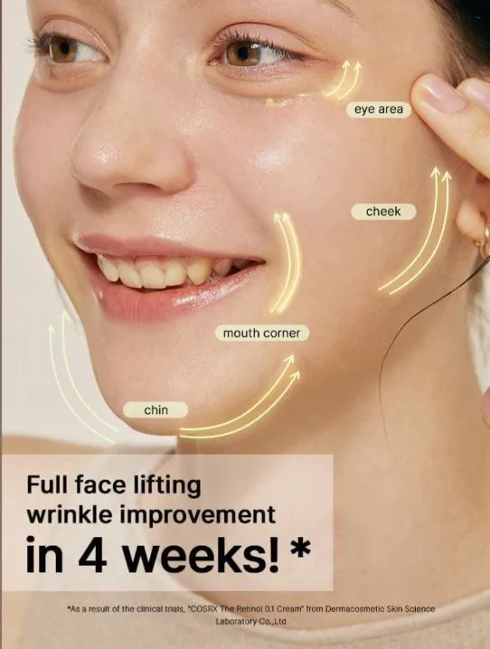 نقدم لكم كريم COSRX ريتينول 0.1، المصنوع بإتقان لمن هم جدد على الريتينول. بتركيز لطيف يبلغ 0.1% من الريتينول النقي، يستهدف هذا الكريم العلامات الأولى للشيخوخة مثل الخطوط الدقيقة والملمس غير المتساوي، مع تقليل التهيج. يوفر التطبيق الخفيف الوزن وغير الدهني امتصاصًا سريعًا في البشرة، مما يمنح الترطيب والتغذية. مثالي للأشخاص فوق 25 الذين يسعون للحفاظ على بشرة شابة ومنع آثار الزمن، فهذا الكريم هو الحل الأمثل للحفاظ على إشراقة ونضارة البشرة.